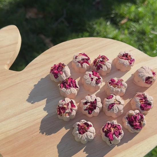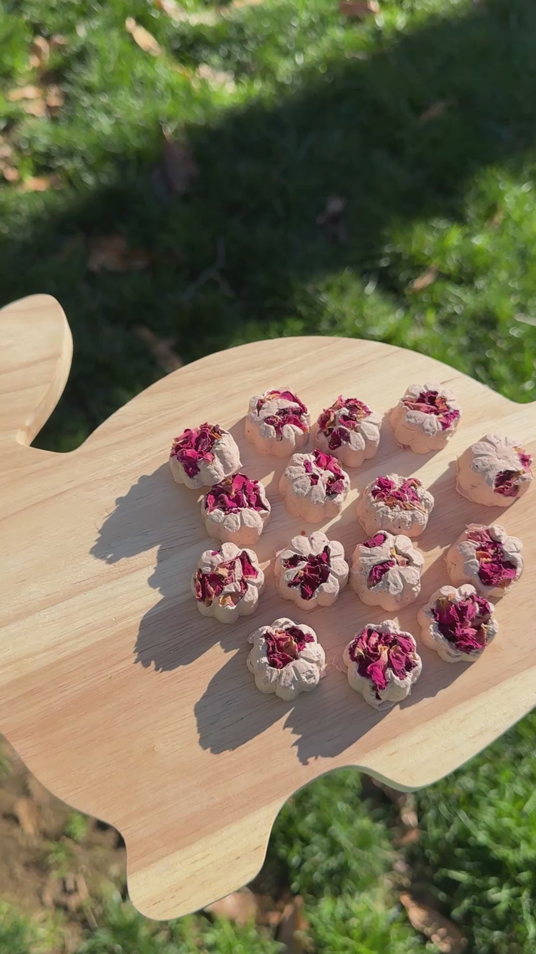 Our Berry Bunny Petit fours are tiny, elegant bites made with just organic oats and organic strawberries—simple, sweet, and bun-safe. Inspired by classic petit fours (but way cuter), these are perfect for celebrating your bun or just adding a touch of charm to snack time.